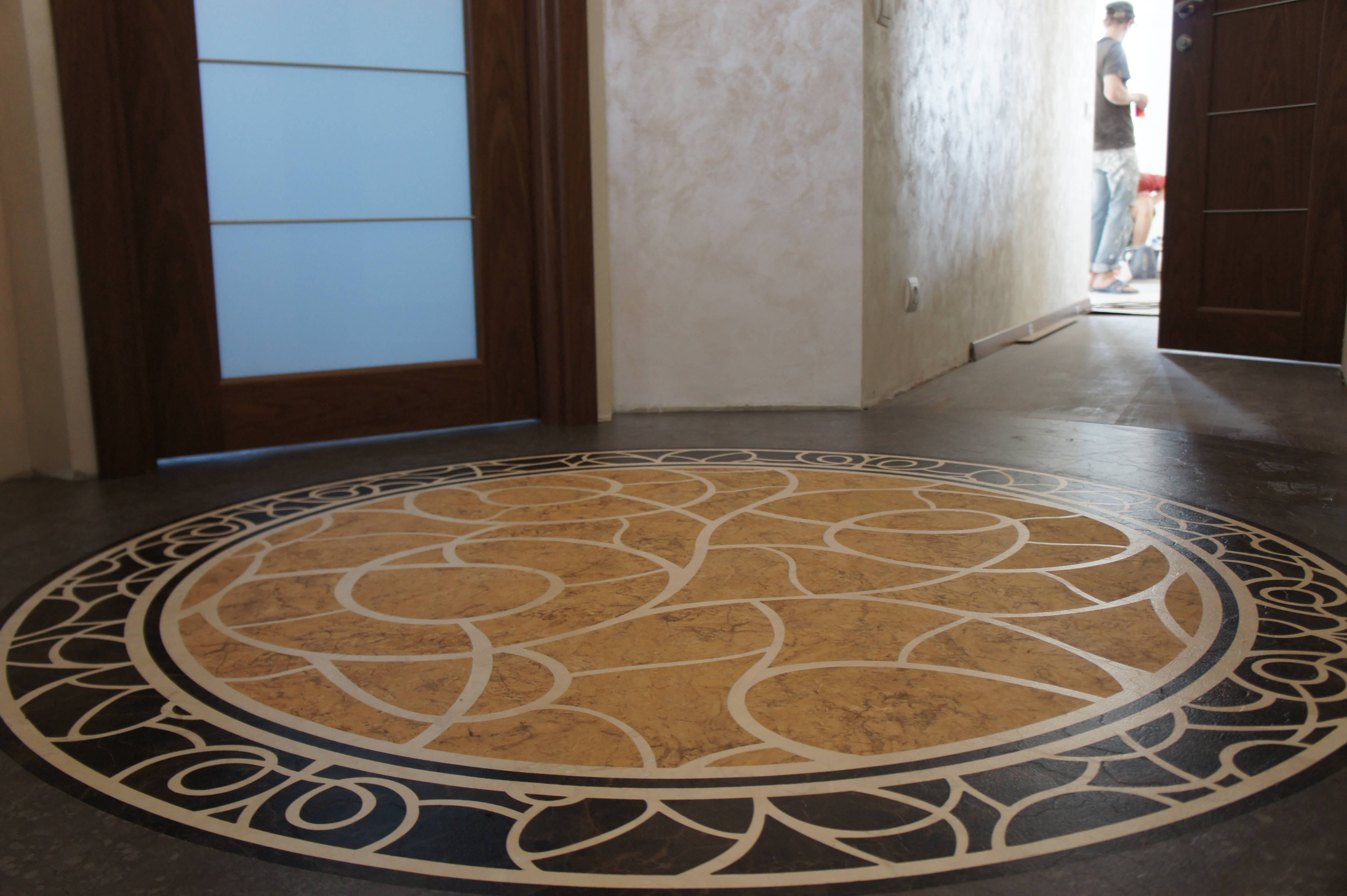 Работа наших мастеров. Из кварцвиниловой плитки создан очень красивый орнамент. Не сдерживайте свои фантазии - наши специалисты помогут воплотить их в жизнь!